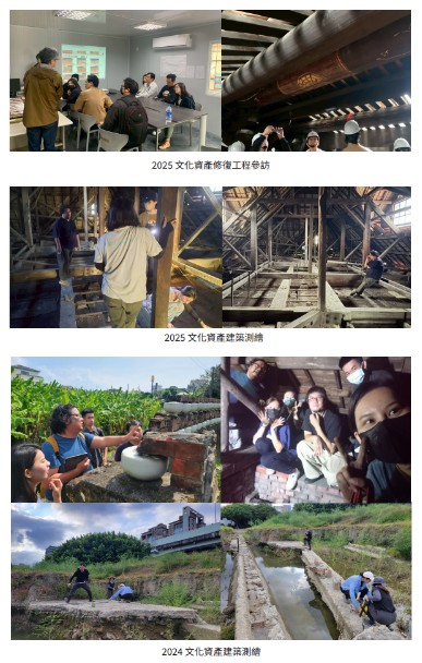 建築空間文化研究室(ASC),以研究生的專業訓練為主,專門從事建築史及理論研究工作,而以建築系大學部同學為班底所成立了建築文化工作室(AC studio)則專門進行古蹟的建築測繪工作。每年寒、暑假,固定會招募5-10位對古蹟或保存有興趣的建築系同學,進行二個月密集且辛苦的測繪訓練,以及各類測量儀器及非破壞儀器檢測的使用訓練,期使於理論與實務之中,建立一學習平台,提供在校時期的實務專業訓練,更符合產學合作計畫的目的。
