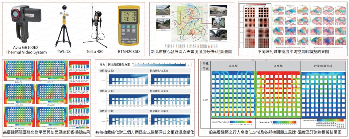 本研究室專注於研究都市環境在發展過程中所觸及之相關面向,包含土地、空間、生態、文資、氣候、法規、建築等等;致力於推動城市永續發展,為創造更宜居的都市環境。城市如何實踐跨越年齡與文化的包容與黏著、協助不同性質之文化資產找尋未來可能,藉由建築計畫、都市規劃與設計的訓練與操作,強化對都市型態的構成認知。近年來,本研究是為了更加專業且精準的操作都市微氣候議題,積極與流體力學相關理工科系進行合作交流,結合本身建築與都市專業,做出卓越的研究成果。