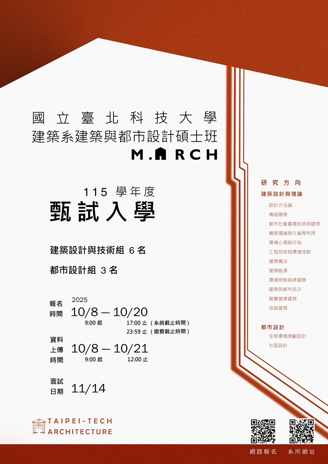 115年 國立臺北科技大學建築系建築與都市設計碩士班招生 甄試入學